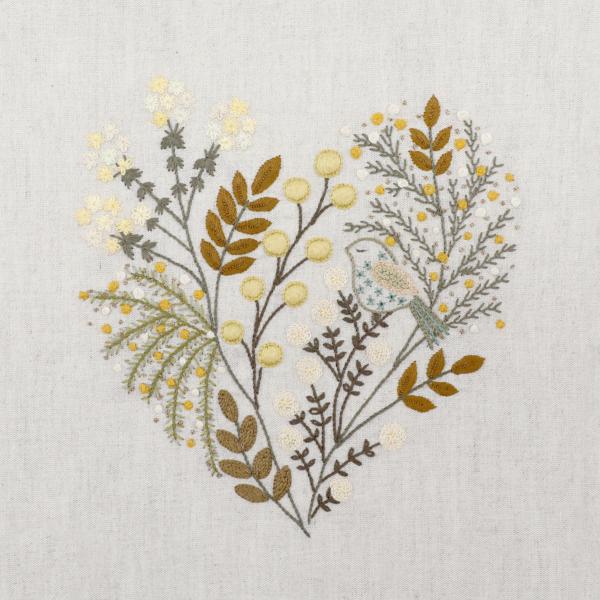 This February heart is part of a SAL (Stitch Along): a collective embroidery project where we stitch together month after month. 1 heart per month, 12 hearts to collect. Each month brings a new coordinated design.