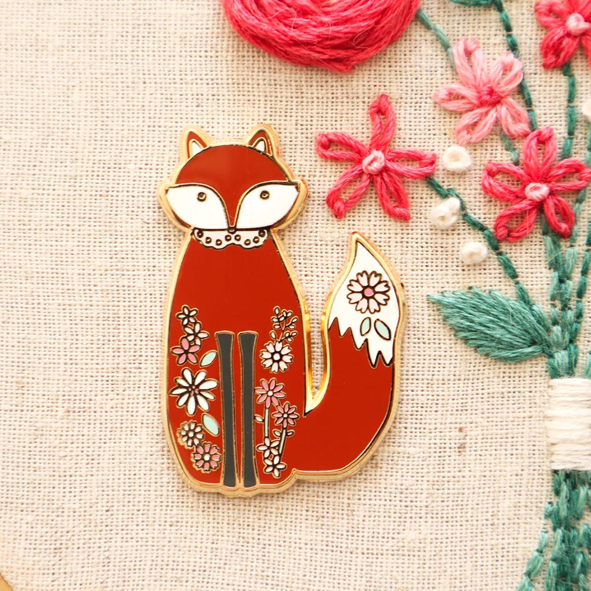 Joli porte-aiguille aimanté représentant un adorable renard fleuri.