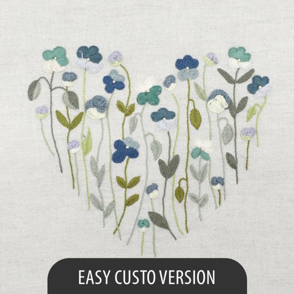 Discover the Easy Custo version of our “Sweet Pansies” embroidered heart, the third design in our 2026 collection: 12 hearts to embroider, one per month, as part of a year-long SAL (Stitch Along).